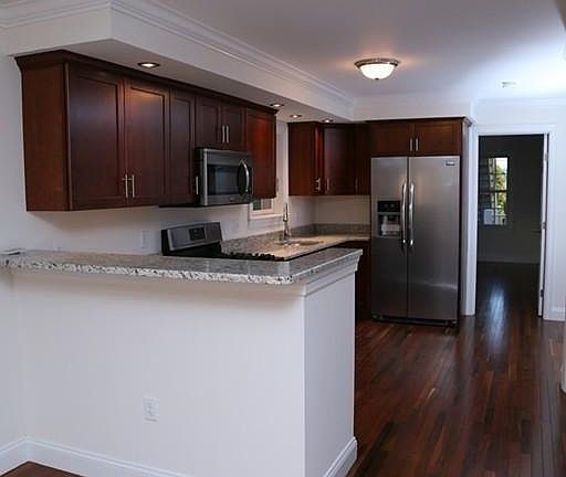 This 2016 built 2 bedroom condominium is located within only a short walk to the East Boston Greenway, Constitution Beach, and Wood Island MBTA Station with a Walk Score of 74 (Very Walkable)! Perfect commuter spot-close to major highways- Mass Pike, I-93 and Route 1A. 5 minutes to Logan Airport; discounted rate for EZPass holders. 10-15 minute drive to Stop & Shop, Target, Market Basket and Costco. 10-15 min to downtown area with bars and restaurants. Open concept Kitchen and Living Room area with Brazilian Walnut Hardwood Floors. The kitchen features granite counters, soft close high end cabinetry, custom built-in wooden pantry with extra counter space, and top of the line stainless steel appliances. Top quality construction includes all Anderson Windows, On-Demand Wall Hung Hot Water Heaters, and energy efficient gas forced hot air heating and central air conditioning. Private deck built with all AZEK decking exhibits the quality throughout, with shared backyard space. Crown moulding and in unit washer and dryer are just some of the interior features. Last but certainly not least this unit comes with a garage parking space, with additional storage room and direct unit access that takes the worry out of winter!