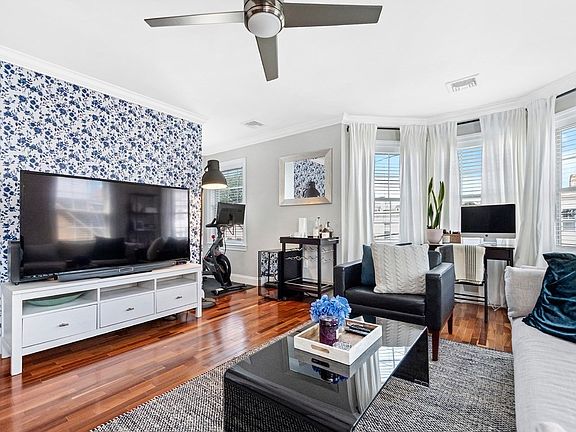 Penthouse condominium with 2 near-equal sized bedrooms, large rear private deck with city views, open kitchen with granite counters, stainless steel appliances, a NEW dishwasher, microwave, gas range, refrigerator, a breakfast bar, large bow front living room with a nook to fit an exercise bike, or maybe a small desk for a mini-office, the washer and dryer is in the unit across from the kitchen counters, 1 garage parking space included and 1 storage space behind the garage space included, shared back-yard, hardwood floors, 2017 construction, tall ceilings, central air (heating and cooling), tankless water heater, and a well run condo association. Enjoy everything East Boston is famous for including easy access to the Blue Line, walking distance to beaches, Winthrop, close to major highways, and the airport. Just minutes to downtown Boston! Pet friendly!! Pay for less than renting! 20% down, res tax exemption, condo fee, 5% interest rate at $599,000 gives a monthly payment of $2,965