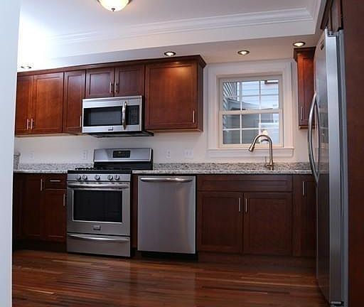 Open concept Kitchen and Living Room area with Brazilian Walnut Hardwood Floors. The kitchen features granite counters, soft close high end cabinetry, custom built-in wooden pantry with extra counter space, and top of the line stainless steel appliances. Top quality construction includes all Anderson Windows, On-Demand Wall Hung Hot Water Heaters, and energy efficient gas forced hot air heating and central air conditioning. Private deck built with all AZEK decking exhibits the quality throughout, with shared backyard space. Crown moulding and in unit washer and dryer are just some of the interior features. Last but certainly not least this unit comes with a garage parking space, with additional storage room and direct unit access that takes the worry out of winter! This 2016 built 2 bedroom condominium is located within only a short walk to the East Boston Greenway, Constitution Beach, and Wood Island MBTA Station with a Walk Score of 74 (Very Walkable)! Perfect commuter spot-close to major highways- Mass Pike, I-93 and Route 1A. 5 minutes to Logan Airport; discounted rate for EZPass holders. 10-15 minute drive to Stop & Shop, Target, Market Basket and Costco. 10-15 min to downtown area with bars and restaurants. Available 7/1/19. One month broker fee, first, last and security deposit due before move in (negotiable for tenants with good income/credit). Call Jesse to schedule a showing for this and similar properties at Boston Pads is not liable for any errors, omissions and change in price, prior sale, rent and withdrawal without notice. All information from sources reliable but not guaranteed. Photographs, videos, description and information about the properties reflect conditions at the time the information was obtained. We are pledged to this letter and spirit of U.S. policy for the achievement of equal housing opportunity throughout the Nation. We encourage and support an affirmative advertising and marketing program in which there are no barriers to obtaining housing because of race, color, religion, sex, handicap, familial status, or national origin tenant pays utilites