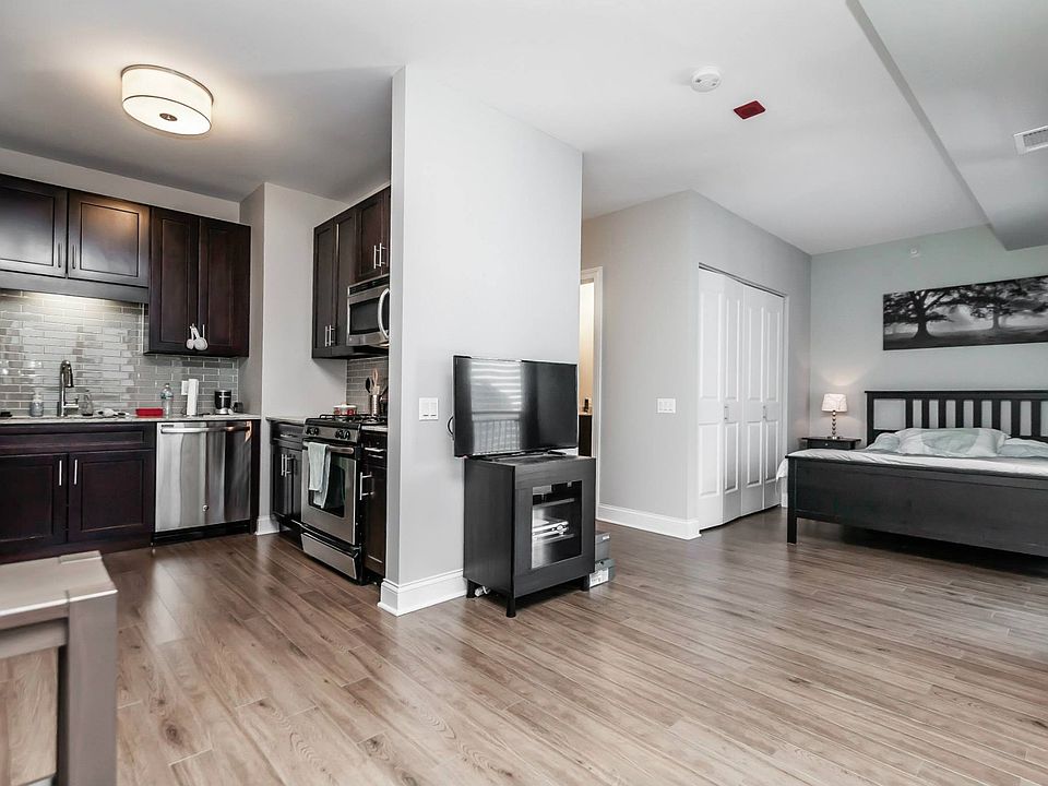 Located in the heart of River North, you can t get much closer to the action. Enjoy tons of shops, restaurants, and evening entertainment right outside your door. And, you re only a short walk to The Loop for your downtown commute. This state-of-the-art property offers some amazing amenities, including a fitness center with a yoga/pilates studio, an outdoor heated pool with private cabanas, TVs and grilling stations, and a resident lounge and club room with a gourmet kitchen. There s even a resident lounge with a fireplace. Top it off with a billiards table, private theatre and golf simulator and you ll have the best of all worlds in your apartment residence and neighborhood. The building is 100% smoke-free and has a 24-hour door staff. These apartment homes include all of the luxury features you d expect, including hardwood floors, beautiful kitchens with granite countertops and stainless steel appliances, and in-unit washers and dryers. Most units are outfitted with large walk-in closets and some have balconies. Parking is available on-site at an additional charge. Cats are accepted throughout and dogs are welcome on select floors (dog breed and weight restrictions apply). There is a dog run for your four-legged friend!
