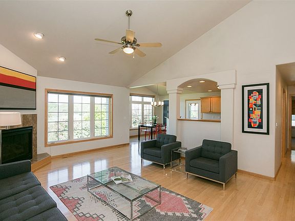 Distinctive and practical ranch w/ arched windows, red brick detail, artful roof proportions, and well-conceived spaces, conveniences within. Hardwood, sloped ceilings, LR (w FP), DR, kitchen in open plan, plus laundry, 3-season sunroom, deck, 3-car garage. Master suite plus 2BRs and extra full bath also on main. Walkout LL to fenced backyard has fam room w/ built-in for entertainment, 4th BR, full bath, 2 bonus rooms, storage. Immaculate, well-maintained, location convenient to area's many opportunities.