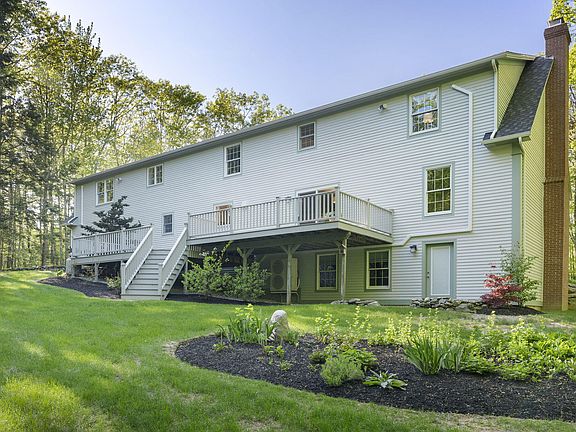 This one-owner home in the established Fox Run neighborhood has been meticulously maintained, beautifully updated and is move-in ready! Situated on a lovely, private, and professionally landscaped 3.37-acre lot, the property includes several perennial gardens, stone walls, a firepit, a large 2 level deck for entertaining and a stone patio. The kitchen was remodeled in 2019 and includes an island, quartz countertops, beautiful tile backsplash, custom range hood, and a large eat-in area with sliders leading to the back deck. The first floor also has a mudroom area open to the kitchen, and a half bath with linen closet and laundry. The front to back living room has a wood burning fireplace too. The property has five bedrooms on the second floor (4-bedroom septic system). The large Primary suite includes 2 double closets, a large walk-in closet with custom shelving, and an updated bathroom with a soaking tub, double vanity, and tiled shower. The additional full bath on the second floor has been beautifully updated. On the lower level is a large family or bonus room which could also be used as a home office. The daylight, walkout basement has ample unfinished storage space too. The open backyard is surrounded by large hemlocks and oak trees which create a very private space for play, entertaining or just relaxing. All major systems have been updated including the roof, Viessmann boiler, Mitsubishi heat pumps, garage doors, exterior lighting and more. Beautiful oak floors may be found throughout the first and second floors as well. The neighborhood is surrounded by over 200 acres of conservation land and easy access to the Blackstrap Preserve Trailhead with numerous hiking and biking trails. There is nothing to do but enjoy life in this wonderful home. Open house Saturday 5/20 from 11:00a-1:00p.
