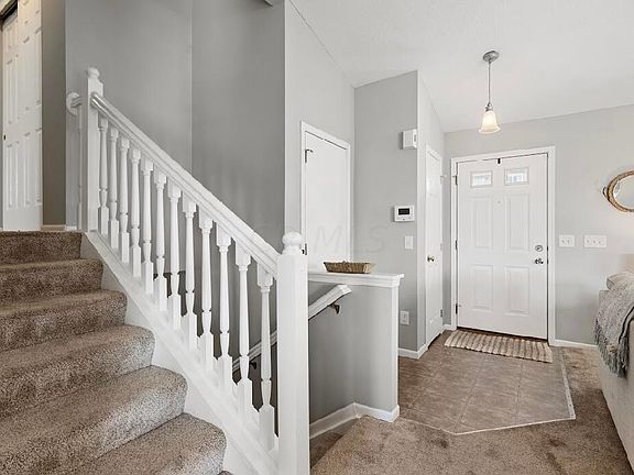 Beautifully updated 4 level split home built by Dominion Homes. This home has an open floor plan with vaulted ceilings. White cabinets, doors, and trim throughout. The kitchen has plenty of cabinets and counter space as well as an eating space. Upstairs is a large owner suite with large WI closet and nice private bath. There are 2 other bedrooms and a 2nd full bath on this level. 1 level down from the main floor is a large family room with a gas fireplace, the 4th bedroom and a half bath. The 4th level is the basement that leaves lots of room for storage. The laundry area is located in the basement. The house is complete with a 2 car garage, a nice patio, and a good sized yard. This community has an elementary school and a community pool.