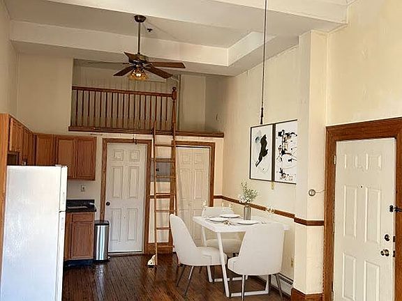 True Loft Studio offers an inviting open layout, complimented by the oversized living room with ample space for dining area. Boasting several windows including Bay window allowing lots of Natural light, sleeping loft area or possible office space, incredible ceiling heights, hardwood flooring throughout & Full semi-modern bath, Laundry on premises & Use of Fitness Room. Owner pays for cold water. Tenant pays for utilities $35 screening process fee per person 1.5 Mo. Security Deposit 1st Mo. Rent Broker fee
