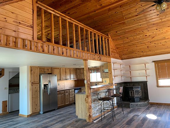 This is a great little home sitting on ten acres in Wheatland , Wyoming. Complete with an arena, horse barn, and chicken coop, this place is set for country living yet only ten minutes from town. The log home was built in 1995 has two bedrooms, one bathroom and a beautiful loft. The open floor design has a spacious yet cozy cabin feel.