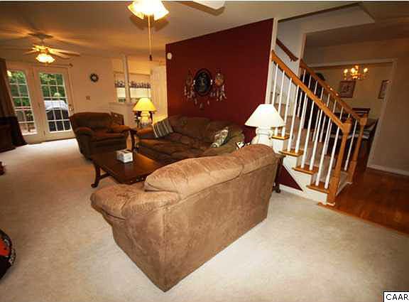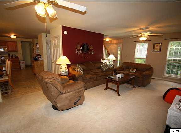 A Country setting, that's close to city amenities 4 good sized bedrooms and 3.5 baths, there's even a full bath in the basement where you are treated to a sauna, an exercise room and a rec room with a bar area. The upstairs has lots of space to enjoy living. The great room is 24x13 and opens to a 20x13 kitchen. Add the formal dining room and you have the perfect plan! Patio off lower level. Close to C'ville, Zion Crossings and even Richmond! Direct TV available.LP available but not connected.