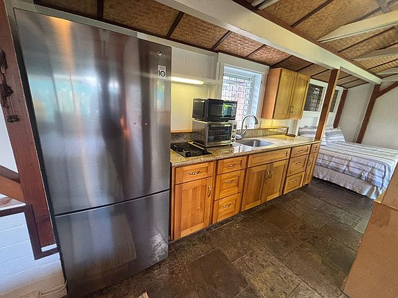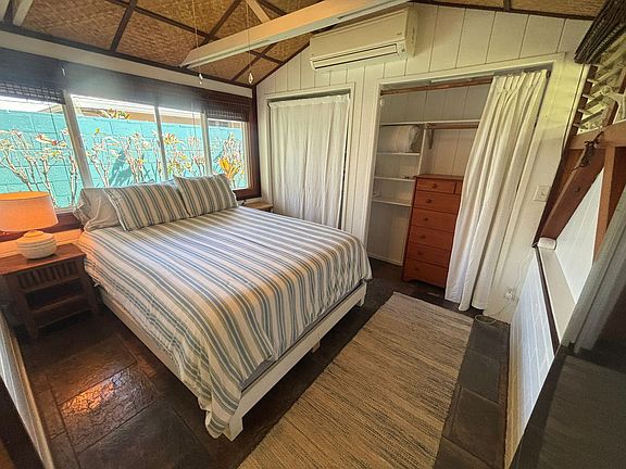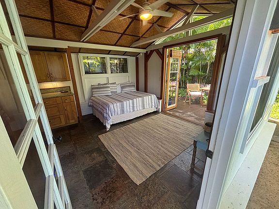 The Beachwalk Bungalow is ideal for two adults, featuring a fully furnished, one queen-size bed in the bedroom and two twin daybeds in the living area. There is no door separating the bedroom from the living area; the two rooms are separated by the bathroom and kitchen. This charming Hawaiian-style Cottage is located on private property just minutes away from world-famous Kailua beach and close to Kailua town. Walk down the private tropical pathway and enter the outdoor sunny patio, the perfect spot for breakfast. Enter through the French doors to the cool and airy living area. An open-beamed, cathedral ceiling is accented with bamboo thatch. The bath is well-lighted and has a glass shower. The kitchen facilities are complete: a refrigerator, double burner, microwave, coffee maker, large toaster oven, pots, pans, dishes, and flatware. No need to bring your beach supplies. We have boogie boards, beach chairs, and beach towels for your use. Amenities: TV, Washer & Dryer, Linens Furnished, Grill, Ceiling Fan, No Smoking. The cottage offers wireless internet access, street parking, and use of the washer and dryer. Activities: Jet Skiing, Swimming, Boating, Tennis, Hiking, Horseback Riding, Shopping, Fishing, Golf, Recreation Center, Biking, Snorkeling. Kailua Beach offers the finest for kayaking at any level of experience. Walk the 3-mile beach at sunrise, or when the moon is high in the sky. Make your way downtown to browse the local boutique shops for a souvenir to take home with you. Eat like a local at one of the many restaurants before grabbing a famous shaved ice at Island Snow. The rent is $2800/month, and Utilities are included to a cap. 6 months minimum rent. Street parking.