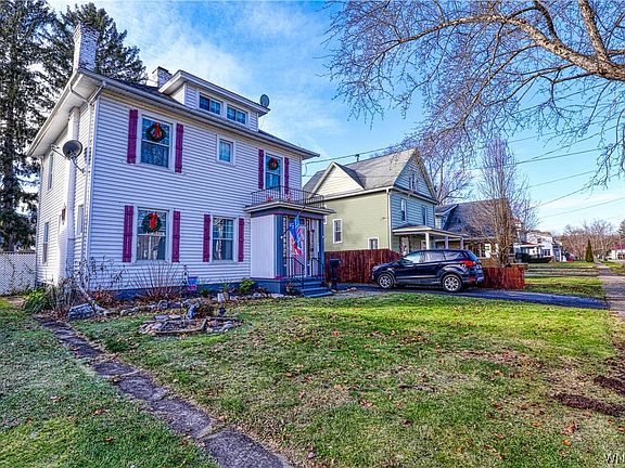 This wonderfully updated home oozes charm throughout. A cozy foyer greets you with benches for unloading wet boots and wiping dog paws and leads you into a long and generous living room with a fireplace and gleaming hardwood floors. A bright formal dining room has new lighting, a contemporary chandelier, and hardwood floors. The updated kitchen has newer appliances, a sink, and counters and leads into a back mudroom for extra storage. The hardwood floors continue upstairs in 3 spacious bedrooms with deep closets. A room overlooking the backyard of one bedroom could be perfect for a den or hobby room. The walk-up attic has rooms that could be finished for additional living space. The dry basement has a new furnace and hot water tank. Step outside and you'll find the luxury of a patio with a newer hot tub and detached garage within a fenced yard for privacy. Located on one of Salamanca's most desirable streets, this home is in move-in condition and ready for its new owners to love it anew!