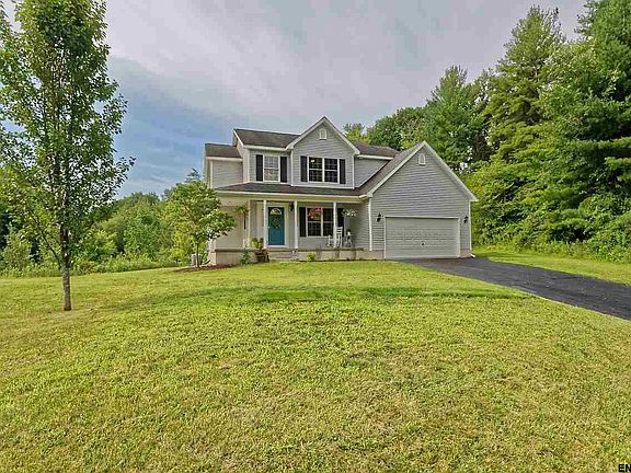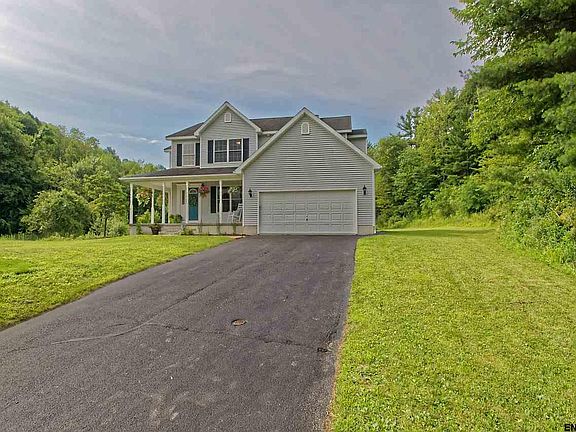 Welcome home to this beautiful 4 bdrm, 2.5 bath Colonial w/ 3.72 ac. nestled on a cul-de-sac in the desired Lake Meadows. Gorgeous vaulted entry w/ chandeliers opens to the formal D/R. Gourmet eat-in kitchen w/ SS apl, granite counters, & gleaming H/W flrs opens via cutout to L/R, & via sliding door to deck; perfect for entertaining. Serene 2nd fl master suite, 1st fl laundry, tranquil wrap around porch, Averill Park schools, & so much more. 2 mins away to the public lake beach!