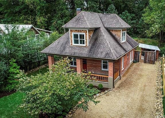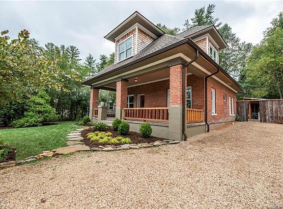 This charming in-town brick bungalow was recently rebuilt, literally from the ground up. Painstaking details including antique reclaimed wood floors, new plaster finished walls and custom-built cabinets and interior doors are just some of the upscale finishes you'll enjoy; but it is the all new plumbing, electrical, HVAC, windows, interior floor and wall framing, foundation, and encapsulated crawlspace that will give you peace of mind. An open plan ground floor lends itself to easy living and entertaining. Upstairs is a large open foyer that would make a perfect private library, office, or den. Landscaping and privacy features are also all newly constructed. An open backyard shed has many potential uses and the large front porch is ideal for evening relaxing. An easy walk to downtown Brevard proper and the location in Brevard's revitalized Brevard Lumber Arts District makes for great opportunities for dining, shopping, and active neighborhood life.