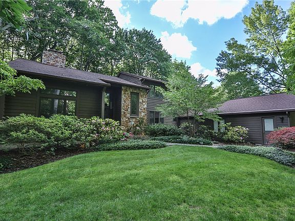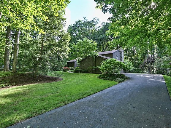 **PLEASE NOTE SHOWINGS START JULY 6TH. RARELY AVAILABLE! KNOLLWOOD DRIVE! Pittsford Schools. Custom Woodstone Contemporary nestled on a private, wooded professionally landscaped .58 lot. Beautiful open living room loaded with light, soaring ceilings and a dramatic two story stone fireplace. The updated cooks kitchen overlooks the family room with a wall of glass doors leading to a 2012 spectacular porch addition with built-in gas grill. Enjoy entertaining, quiet dinners and your morning coffee in this fabulous porch retreat! Five bedrooms and three and one half bathrooms. Extensive list of updates including a spa-like primary ensuite with double vanities and custom designed walk-in closet. Spacious three car garage with epoxy flooring and extra storage space. Finished lower level with updated powder room, wine cellar and office/studio space. The first floor den has an attached full bathroom and could be used as a perfect guest suite/in-law or office. Original owners have maintained this property meticulously and it shows! Walking distance to Oak Hill and The Country Club of Rochester. Convenient to Shopping and Expressway. SELLERS WILL BEGIN TO REVIEW OFFERS ON JULY 11th at 5 p.m.
