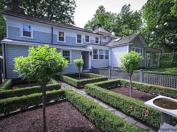 "Valley View", in the heart of Stone Ridge is a refined colonial revival home constructed in 1840 and one of the original homes on the Leggett estate. In 1892, Mr. Leggett commissioned the estates architect Charles Haight to expand the house to include exceptional architectural details including a gracious columned porch, distinctive period balustrades, paneling, and mantle pieces. The home features a formal living room, gracious dining room and intimate library. A cozy breakfast room opens onto a well equipped kitchen featuring stainless steel Viking, Bosch, and Jenn-Air appliances. The large, comfortable family room is appointed with bead-board paneling and a wood burning stove. This room opens onto a boxwood garden, 2 bluestone terraces, gardens, lawns, and mature trees. The separate and private master suite features a Waterworks bathroom, dressing room and cozy sitting room that can be used as a nursery. This home combines the modern conveniences you can expect with the grace and comfort of a truly unique home.