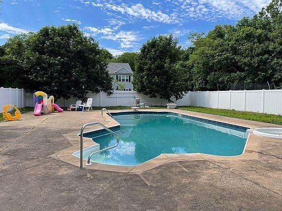 Your PERFECT STAYCATION HOME! Spacious 3 bed, 2 bath home bordering Buffinton Park. Enjoy hours of fun in the 33,000 gal kidney shaped in ground pool w/built in whirlpool or playing in your adjacent grassy yard. Relax in front of the fireplace in the family room, or snuggle around the wood stove in the main bedroom. Main bed also features double closets, bathroom, cathedral ceiling, a loft with spiral staircase, and sliders to the pool area. The kitchen is open to the living area and family room which also has sliders to the pool. A great layout for entertaining! Attached 2 car garage and full unfinished basement await your ideas. Vacation every day. You deserve it!
