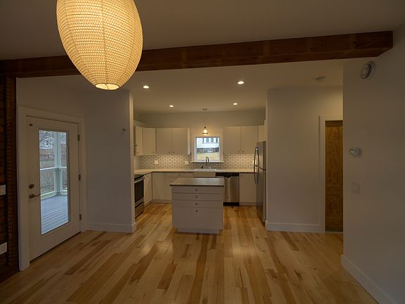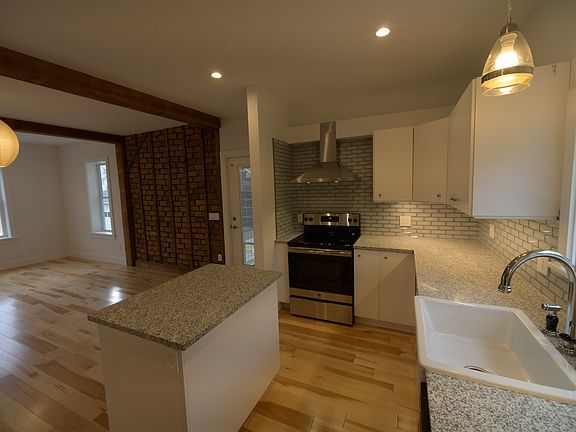 Architectural design with vintage touches: exposed brick, granite counters and two porches. Beautiful kitchen and appliances Wash machine and dryer in the apartment. Radiant heated bathroom floor. Beautiful property. Off street parking. Great neighborhood Tenant pays all utilities including water. Owner pays Lawn care and snow plowing