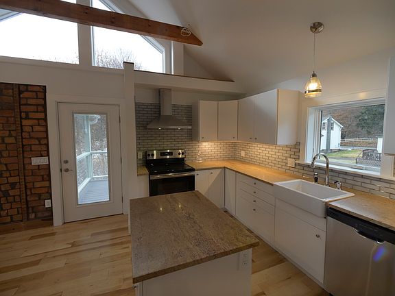 Architectural design with vintage touches: exposed brick, granite counters, cathedral ceilings and meditation loft with sunny porch. Beautiful stainless steel kitchen and appliances Wash machine and dryer in the apartment. Radiant heated bathroom floor. Beautiful property surrounded by lawn, raised bed garden. State of the art HVAC including ERV. Storage locker. Off street parking. Short walk to Kingston Point beach park. Great neighborhood. One year lease Renter pays water and all utilities. Landlord pays lawn care and snowplowing