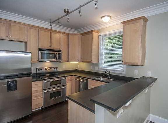 Welcome to 71 B Line Street! Fabulous location, updated, and move-in ready! This stunning home offers 9 foot ceilings, wood floors the first story, heavy crown molding throughout most of the home. The attention to detail is very evident the minute you walk through the front door. The living room is spacious with a ceiling fan and multiple windows bringing in an abundance of natural light! The kitchen offers a breakfast bar, granite counters, SS appliances, built-in microwave, pantry, and track lighting. Nestled between the living room and kitchen is an eat-in area, creating a warm and open floor plan. Rounding out the first floor is a powder room with a pedestal sink. The second floor offer the Master bedroom and 2nd bedroom, both nicely sized with ceiling fans, and two full bathrooms w