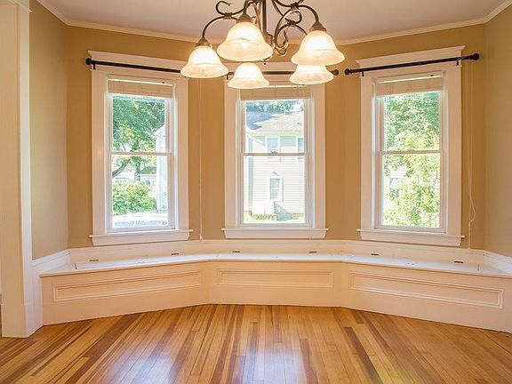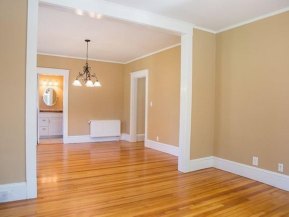Available June 1st-Gorgeous first floor 2 bedroom 1.5 bath in owner occupied 2 family home! High-end renovations throughout. Beautifully finished wood and tile floors. Replacement energy efficient windows, new energy efficient heating system with new radiators. Updated kitchen with GE Profile energy efficient stainless steel appliances and Corian counters. Dining room has bow window with window seats. Living room with ceiling fan. 2 bedrooms with good closet space. New ceiling fan/light in main bedroom. Full bath with oversize shower with dual shower heads. Half bath with laundry area including storage space, and new Maytag washer and dryer. Spacious 2 car garage. Located in desirable town center, but with easy access to I-91. Well behaved pet considered by landlord and additional fee per month if pet accepted. Owner pays for trash, water/sewer, snow removal and landscape maintenance.