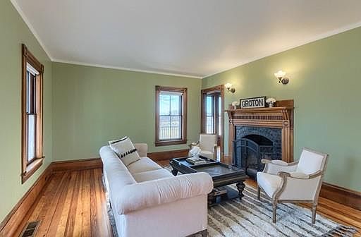Location, Location, Location! The lovingly renovated Historic Capt. Palmer House is graced with period details & built ins, but includes a stainless & granite kitchen upgraded to modern standards in the past year. Set opposite prestigious Lawrence Academy, adjacent to the Lawrence Academy fields, Town Fields, Public Library & Lawrence Memorial Playground, the sidewalk from this home leads you to all the restaurants, shopping & amenities of quintessential downtown Groton. Relax in an Adirondack chair on the wraparound farmer's porch that hearkens back to another era before retiring inside to sit before a roaring fire in the Family room and enjoying a fine meal in the formal Dining Room. Options aplenty with the layout, as a downstairs bedroom complete with en suite bath is well suited as guest room, home office or den. 4 bedrooms & renovated full bath grace the second level, & additional flexibility of lifestyle in several rooms in partially finished walk-up 3rd floor.