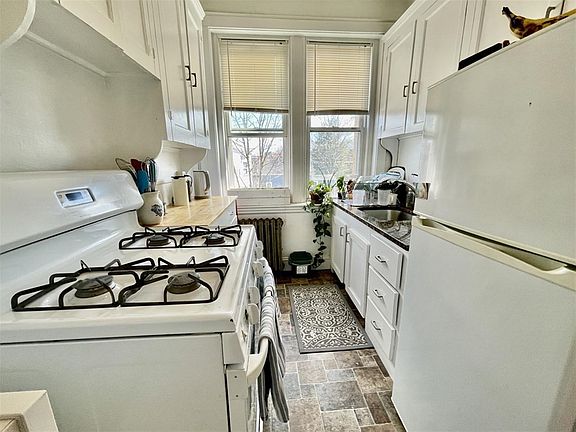 One-bedroom on the third floor. Sunny corner unit offers pleasant views of Martin Street and/or the front courtyard from every room. Compact eat-in kitchen upgraded with granite counters, cabinets, 30" stove, white appliances. French doors to bright living room. Convenient laundry room just down the rear stairs. Radcliffe neighborhood near Elizabeth Warren's home and very close to Harvard Square, two T stops, and the commuter rail. Martin Street sees very little traffic since it's not a through street. Very walkable part of Cambridge. (Reference #172371)