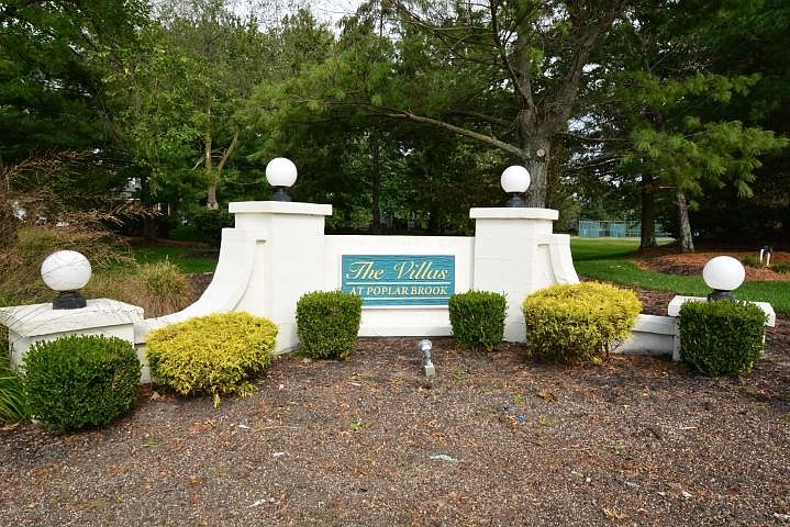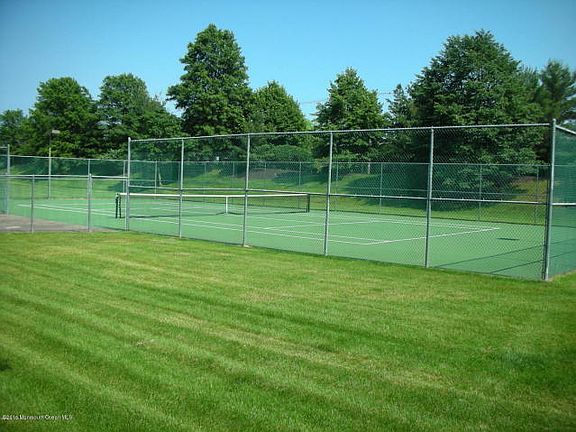 Ideally located upper end unit - backs to the woods balcony overlooks open green space. Perfect summer retreat or primary residence this condo features two generously sized bedrooms, two baths, living room with wood burning fireplace, dining room eat-in kitchen. Master bath with double sinks, soaking tub and separate shower. Sunny 2nd Bedroom with Bay window and double closet and guest bath has a one piece surround tub. French doors to den makes for a great office, workout room or spareroom for company visits. The Villas offers a clubhouse, pool and tennis court. Only minutes to shopping, beaches, and public private golf courses. Convenient access to NYC by train, bus or ferry. Quick access to Rt.18 GPS.