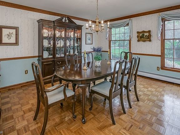 Pristine Center Hall Colonial on a cul-de-sac street within two miles of downtown Chester. Large, eat-in kitchen boasts new stainless steel appliances, granite countertops, newer Pella windows/door. The timeless floor plan spans from a centered foyer to formal living and dining rooms with hardwood flooring. The family room has a wood-burning fireplace and access to an expansive deck that overlooks a level back lawn that backs to the Black River Preserve. A powder room is located between the family room and a spacious country kitchen. Tucked behind the kitchen is an office with new carpeting, the laundry room and access to an attached, oversized two-car garage. The master bedroom suite has been freshly painted and features a walk-in closet. Three more bedrooms and a hall bath complete the second floor.