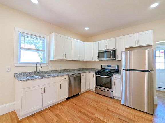 Truly a great deal on a fully renovated two bedroom apartment on the Medford Somerville line. It is an easy walk to Magoun Square and not far to Davis Square. Beautiful kitchen with granite countertops and stainless steel appliances. Open concept living-dining area with vaulted ceilings. There are also hardwood floors throughout and laundry is on the second floor landing and it's free! There is also one parking spot off street included with the rent. A cat is negotiable. This is an awesome apartment. (Reference #177100)