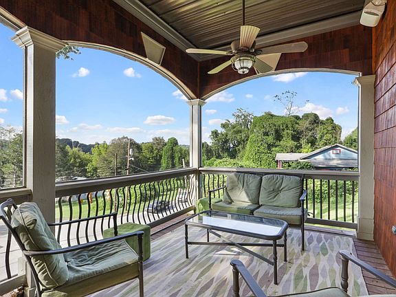 Luxury downtown Blue Ridge craftsman in prime location - sold completely turnkey!! Rare downtown opportunity with transferable short term permit in place and recent rental projections of up to $120K!! Well built, meticulously maintained 3 bedroom features great views and easy walking access to downtown Blue Ridge! Incredible rental potential with direct downtown access, ample parking, fiber internet and comfortable outdoor spaces perfect for entertaining! Warm and inviting interior, w/ high-end finishes throughout and open floor plan w/ bedrooms on each level for added privacy for all guest. Chefs kitchen opens up to a comfortable great room with stacked stone fireplace with access to the main level screened porch. Oversized primary bedroom suite features king size bed, its own gas log fireplace, wet bar and its own private balcony. Main level bedroom offers a king bed as well as a private courtyard with outdoor seating and garden. Terrace level bedroom with game room featuring another wet bar, pool table and covered back porch. Fenced in yard for your four legged family members and room to add a garage! Excellent for full time or part-time use, or as a luxury rental investment property. Great proximity to the Aska Adventure area, as well as, the Scenic Railway, Lake Blue Ridge, golf, and trophy trout fishing while within steps to all the new restaurants, cafes, and nightlife in historic downtown! $10K in seller contributions with approved offer by 3/1!