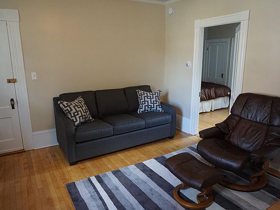Available for rent is this charming first-floor unit located in the heart of downtown. Easy walk to everything downtown has to offer, including many restaurants. This recently renovated apartment has a new kitchen that includes granite countertops, soft-close drawers, and stainless appliances. One off-street parking spot is included with the unit. Walk in from your own entrance off your private back porch and shared courtyard. Heat, hot water, and on-site laundry are included in the rent. No pets allowed. One-year lease, $29 application fee (using Zillow application), rental insurance, and $1,500 security deposit required. Please complete a Zillow application if you are interested in this property. Owner pays: Heat, Hot water, Trash pick Up.