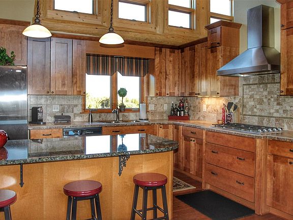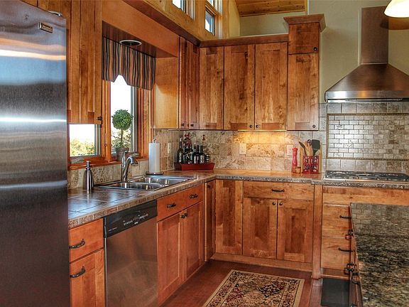 Perfection to say the least! Heavily tree'd lot with unobstructed views of the Spanish Peaks and Valley from every direction! The immaculate interior offers log accents and hard wood floors with radiant heat. Custom kitchen cabinets, slow close drawers, stainless steel appliances in the kitchen which is open to the dining and living area for entertaining! The great room boasts a custom fireplace, vaulted ceilings, large patio doors that open to the front deck, the width of the home, a full wall of windows paint a perfect picture of the Spanish Peaks! Main level master bedroom and five piece bath is just off of the living area. Down the custom, wood stairs, is a large family room with a slate fireplace, entertaining area with a wet bar, wine fridge, and small fridge, with a walk out patio. At the other side of the family room are two bedrooms and a 5 piece bath. The 2 car garage has a large heated shop and beautifully finished 3/4 bath. This home is a must see!