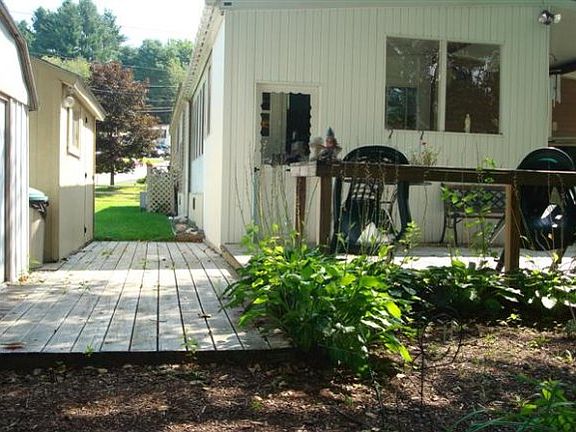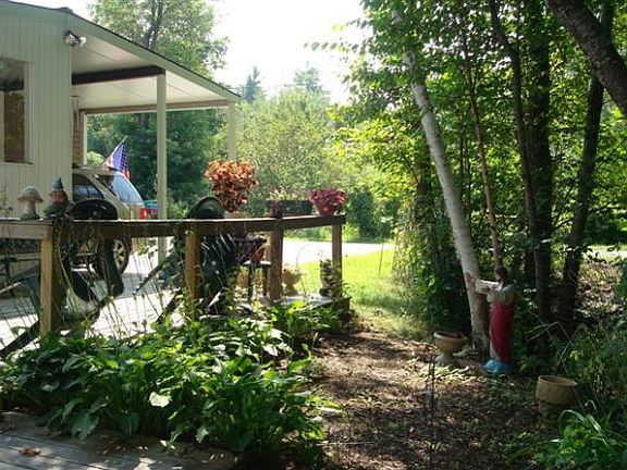 This double-wide boasts newer metal roof, windows, doors, central air, furnace,electric hot water heater`, carpeting, tiled floors, counter tops, skylights and vinyl siding! ! Well designed. 4 season Florida room in back overlooks a private wooded area.. 2 decks, one at each end. 5 skylights let's in the natural light. Easy to heat. Carport.