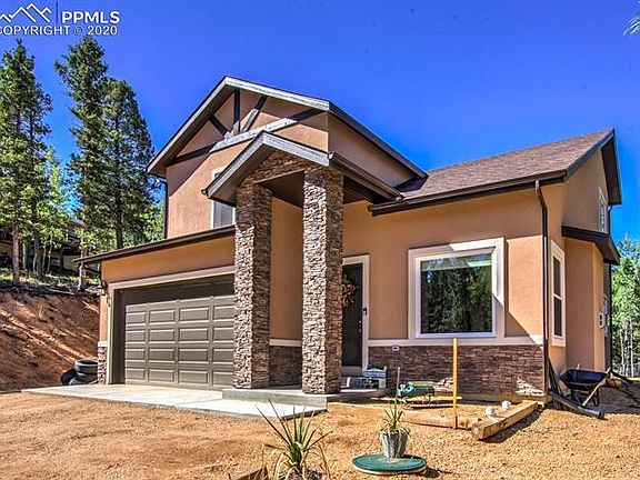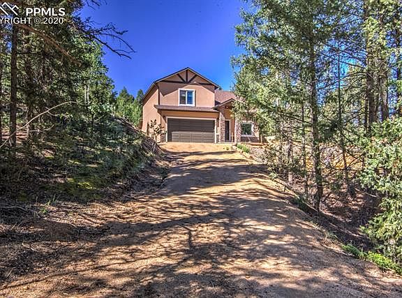 Newer construction, very efficient mountain home with main level floor plan, great room w/ soaring vaulted ceilings, and an overlooking large loft for an office or family room, and wood laminate flooring on the main level. Kitchen includes granite counter-tops, rich Aristokraft wood cabinetry, and LG stainless steel appliances; main level master suite w/ walkout to rear concrete patio, 4 piece attached bath w/ Travertine tile floors and shower. Main level powder room across from the hall laundry. The upper level loft is perfect for an office or family room, and two, large additional bedrooms, one bedroom attached to the full bath, making use as a 2nd master suite possibly. Upgrades include LED lighting, Hunter Douglas remote fans, Milgard windows, Low maintenance acrylic stucco and ledge-stone exterior. Elegant covered porch entry with rock pillars, and wooden beam accents. Nicely treed yard, situated to capture Northern mountain views. Outdoor entertaining on the backyard concrete patio makes for excellent Western sunsets too! Located only 20 minutes SW from Woodland Park, 10 minutes to Divide and grocery, and less than an hour to Colorado Springs! Snow Skiing, trophy trout fishing and National Forest access are all nearby, allowing easy access to the outdoors! Neighborhood access to the private trout fishing club membership is available at an additional value, ask for details. Well was flow tested and produces 5 gallons per minute, and home is also on natural gas in the neighborhood! Just 1.5 miles off a paved County Road.