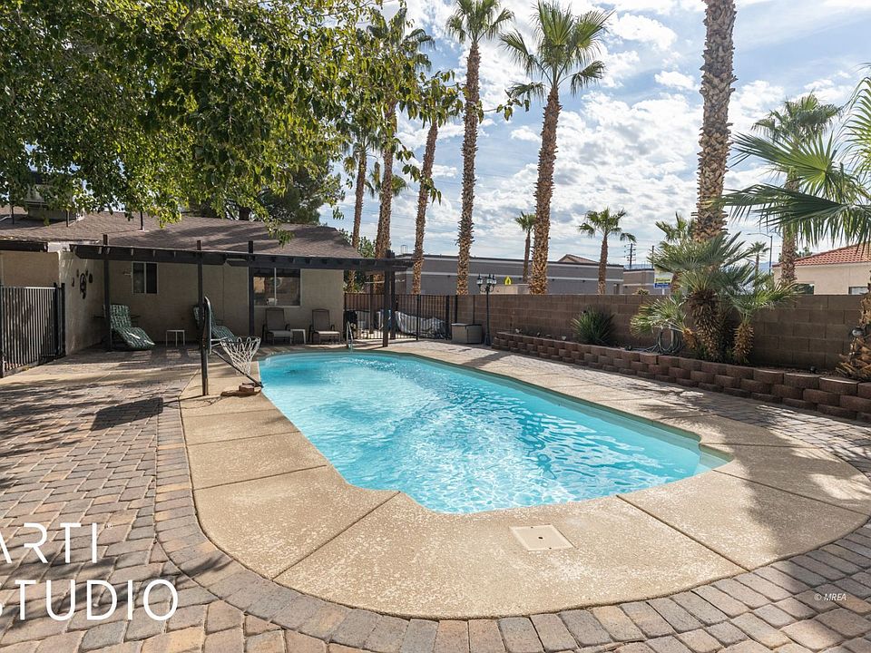 Don't miss out on this 1496 sq ft, 3 Bedroom, 2 Bath, 2 Car Garage Home with a Pool! When entering this home, you will notice the beautiful new flooring. The kitchen opens up to a large dining room that walk out to a pool room. All appliances are included even the washer and dryer. The backyard is another amazing feature in this home with 2 covered patios, a gazebo, a large pool with a basketball hoop and a slab for an outdoor BBQ. This home is located in the Arrowhead Subdivision, within walking distance of the elementary school and the rec center and is conveniently located in the center of town! Mesquite is a premier location to soak up the sun with numerous activities such as our local recreation center, community events, world class golf, and much more.