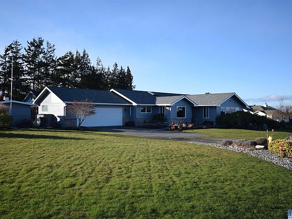 Beautiful one level house with nice water view of the Strait of Juan de Fuca, Islands & lighthouse. Large corner lot has been professionally landscaped & has fruit trees, garden beds & greenhouse. Three bedrooms plus office area, and separate dining room which could be office/hobby. Kitchen has fabulous Wolfe stove/oven & beautiful blue glass tiles with custom lavender accent piece. Space for 6 or more bar stools. New enlarged, water view back deck in fenced backyard. 1 year old roof & exterior paint.