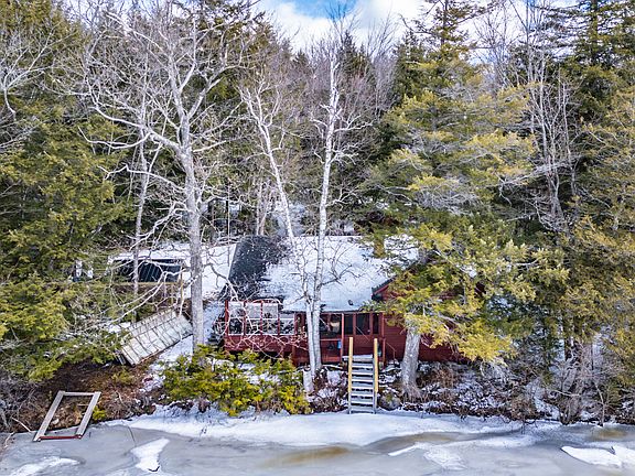 This delightful cottage is mere steps from the water and features three inviting bedrooms, along with a separate bunkhouse in the backyard. Inside, you'll find a beautifully remodeled bathroom, a full laundry area, and a cozy living room adorned with a fieldstone fireplace. The highlight of the home is the charming screened porch, perfect for relaxing and enjoying the tranquil surroundings. Come and indulge in the beauty of lake living at its finest!