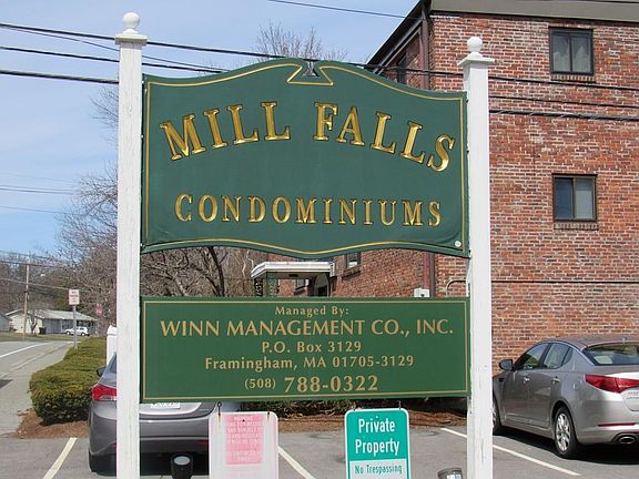 Saturday Open House CANCELED. Opportunity Knocks! Who will answer? Great for investor or low cost rental alternative. First floor one bedroom unit at Saxonville's Mills Falls Condominium community. Good size rooms, updated bath, laundry room and extra storage just steps away, 2 car parking and private entry make this a terrific choice for your next home. Walking distance to post office, hardware store and pizza! Easy commute to everything else. Be sure to attend group showings scheduled for Thursday & Friday, 4/12 & 4/13 from 4:00-6:00