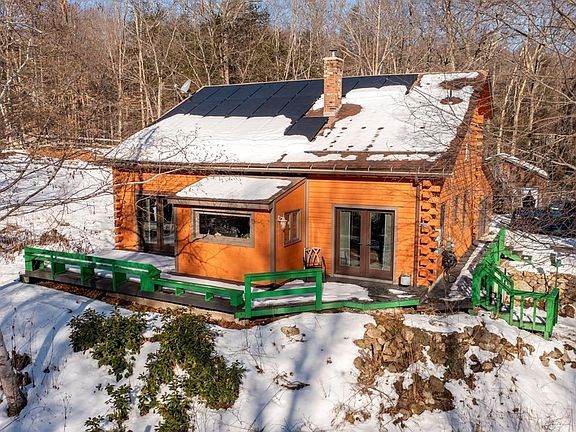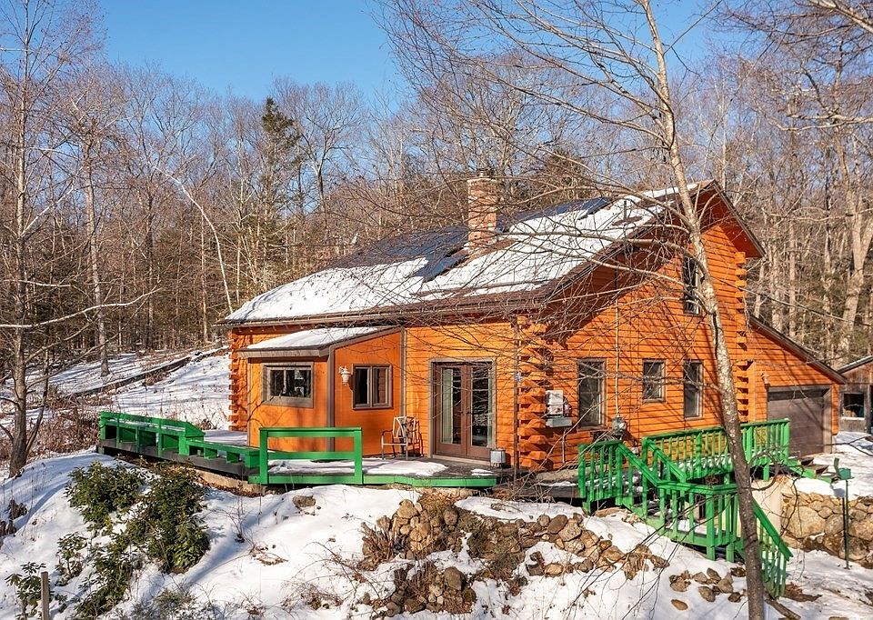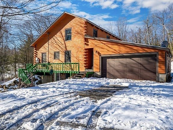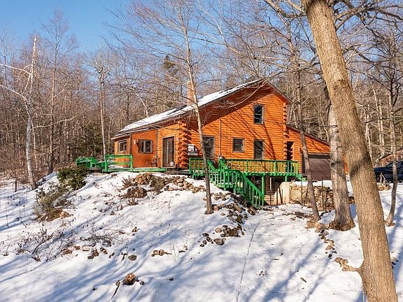 Enjoy wilderness from this log cabin situated on 10+ acres in beautiful Westhampton. Post & beam construction, vaulted ceilings, and an open concept make this interior truly special. Enter into a beautiful kitchen with updated appliances and butcher block countertops along with intricate woodworking details. The kitchen is open to the dining room and living room which feature vaulted ceilings, wood beams and a great reading room or office with a ton of sunlight. French doors provide access to the large deck. Also on the first floor is a full bath and one bedroom. The second floor has two additional bedrooms and another full bathroom. The exterior was freshly stained and painted in 2023. This home features brand new energy efficient replacement windows throughout (2021), newer hot water tank (2018), newer septic tank (2019), and newer electrical panel (2020). Lovely acreage features trails and a stream.