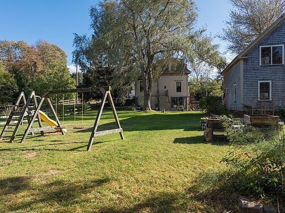 Close to Grand Cove, West Dennis Beach, shopping, and restaurants, from this stately Circa 1843 home with a Mansard style roof offering a strong aesthetic appeal used in the Renaissance and Baroque French Architecture. The front porch welcomes you into the front entry hall staircase with the original ornate newel post and balusters to the second-floor landing. The formal dining room has beautiful windows and moldings found throughout the house. The sunfilled kitchen has a breakfast nook overlooking the large backyard with plenty of room for gardens and summer games: First-floor primary bedroom, laundry, and full bath. The second floor has two bedrooms, a full bath, and a bonus room. The full walkout basement has interior access. The furnace with 5 zones, one for the water, was replaced in 2013, 200 amp electrical service, and a 50-year roof in 2011. The original 25X30 Carriage barn offers many opportunities for the new owner. Come for a visit and fall in love with Olde Cape Cod.