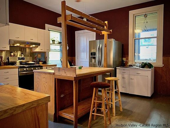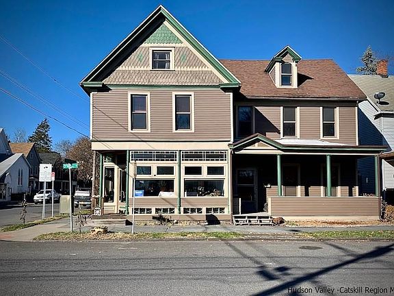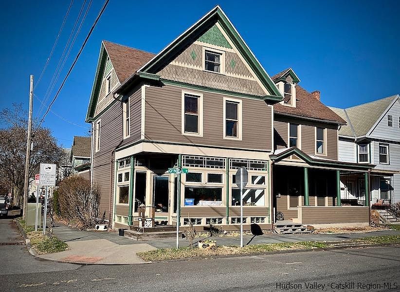 You are going to flip when you see this amazing turn of the century Victorian home with a classic corner storefront. These old mixed-use homes, which were the mom and pop businesses of their day, used to dot the landscape throughout the many neighborhoods of Kingston. This magnificent four-bedroom, one and half bath home was originally a two-family with five bedrooms and storefront and could be again if you prefer? The building has been scrupulously updated & maintained. It offers 10-foot high ceilings, gorgeous original unpainted chestnut moldings and a classic original built in breakfront and bow window set in the large formal dining room. It also features a large country style kitchen, which served as the kitchen for the home and the commercial storefront historically. The kitchen also has 10ft ceilings and a massive center Island, which also doubles as a breakfast bar. The storefront is a bright airy space with beautiful stained glass transom window panels and large southeasterly facing windows. The storefront features 10-foot high wainscoted ceilings and is permitted for a variety of uses. Currently it is used as a music studio and performance space known as A.I.R (Artist in Residence) Studio.