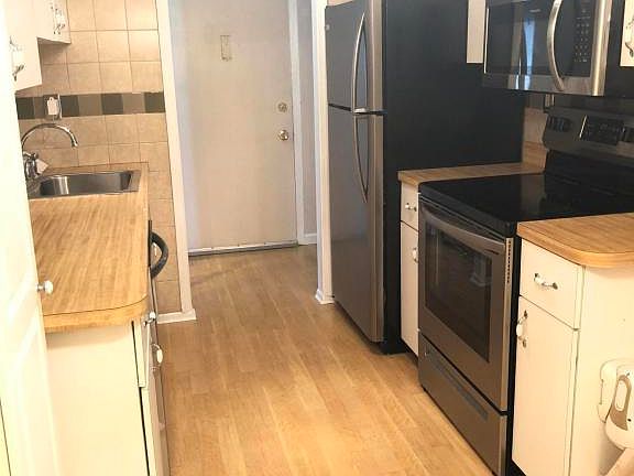 Ground Level! Bright unit. 2 bedroom 1 bath, brand new appliances, new carpet, eat in kitchen, Spacious dining area and balcony off the living room. NYC transit, shopping, pool, tennis, gym, golf course and club house.