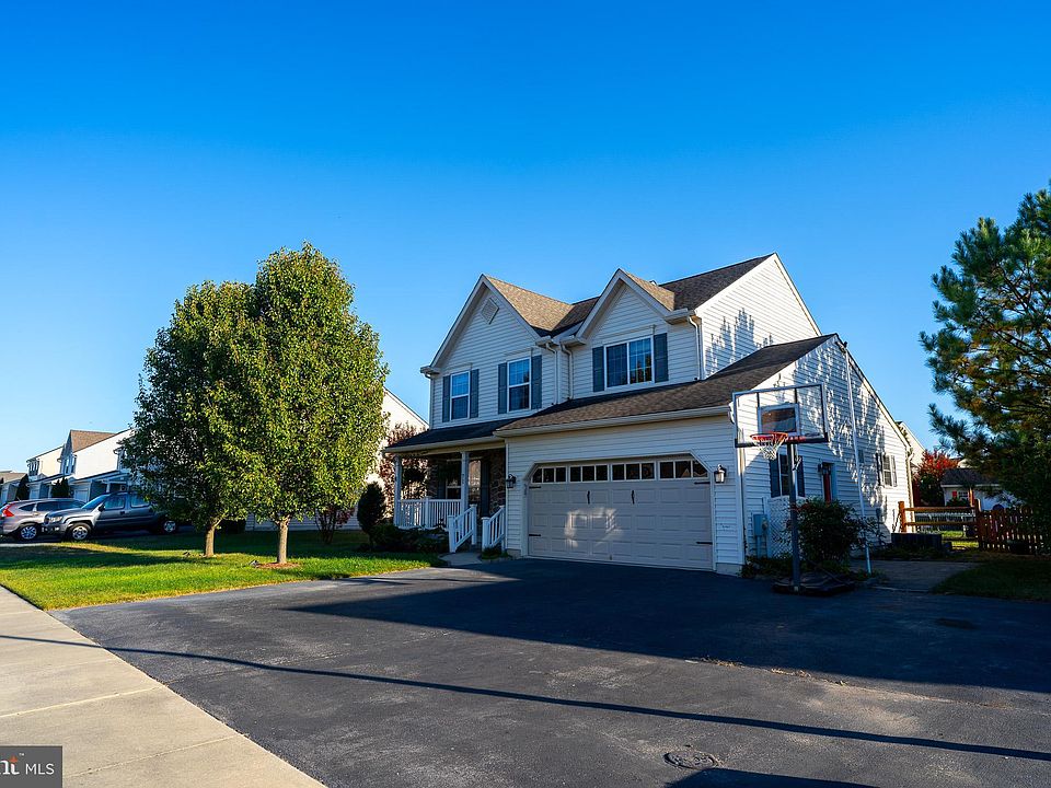 Welcome to your dream home in the highly desirable community of Courseys Point! This meticulously maintained 4-bedroom, 2.5-bathroom residence combines elegance with comfort, making it perfect for families and entertaining. As you approach the home, the mature landscaping and immediate curb appeal invite you in. The extended 3-4 car driveway is a rare find, making it easy to host gatherings or accommodate multiple vehicles. Picture yourself unwinding on the charming front porch during crisp fall evenings, savoring breathtaking sunsets and the warm neighborhood atmosphere. Step inside and be greeted by beautiful hardwood floors that flow seamlessly throughout the main living areas. The formal dining room, which can easily double as a cozy sitting area or playroom, sets the stage for memorable meals and gatherings. Moving further, you'll discover the spacious living room, where an open floor plan creates a welcoming environment. The gourmet kitchen, featuring dark 42-inch cabinets and sleek stainless steel appliances, is perfect for culinary adventures and family feasts. Upstairs, you’ll find four generously sized bedrooms, allowing everyone to enjoy their own space. The primary bedroom is a true retreat, boasting ample room and a closet large enough to share comfortably. The mostly finished basement offers endless possibilities for personalization, whether you envision a game room, home gym, or extra storage. Step outside to the backyard, where you'll be treated to serene views and a fully fenced yard, ideal for kids and pets to play freely. Don’t miss your chance to own this exquisite home that balances style, space, and community charm. Schedule a tour today and experience all that Courseys Point has to offer!