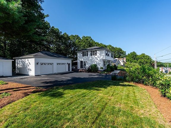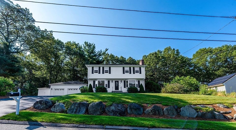 Welcome to this Charming 3–4 bedroom hip-roof Garrison Colonial featuring striking double bow windows and an oversized garage. Enjoy a spacious front-to-back kitchen and dining area, now enhanced with brand-new appliances. The home offers two full bathrooms, one featuring a skylight and relaxing Jacuzzi tub. The finished basement adds a cozy living space with a gas fireplace. Step outside to a beautifully landscaped yard with a large deck, patio, 21-foot above-ground pool, and a six person hot tub—perfect for relaxing or entertaining. Recent updates include a newly installed front lawn and new front granite stairs for modern comfort and curb appeal. Located in a quiet cul-de-sac in a desirable Attleboro neighborhood.