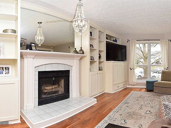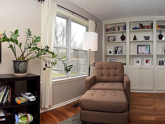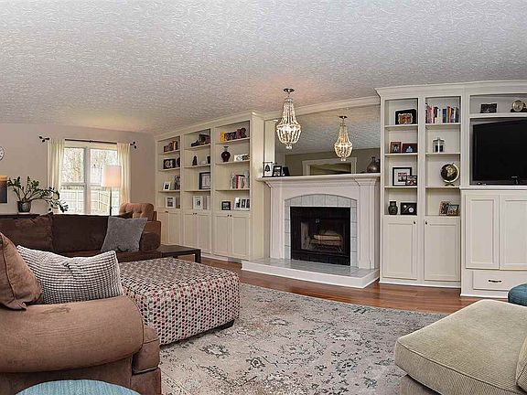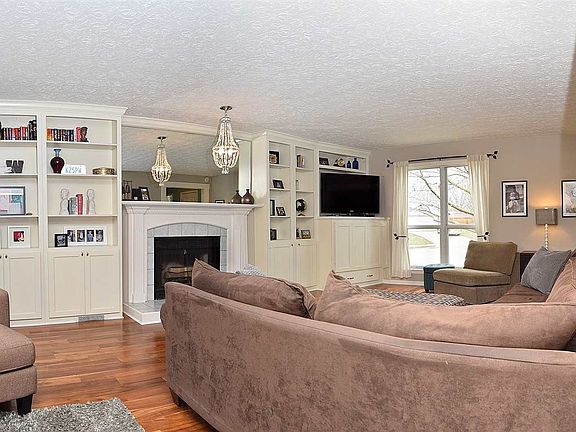 New hardwood on the 1st floor, fresh paint, wall of custom built in cabinets in the great room, lots of storage, 3 closets in the master bedroom, deep laundry room with shelves, oversized garage including a storage room and bump out area newer privacy fence, large backyard, well maintained home located at the end of a quiet cul-de-sac.