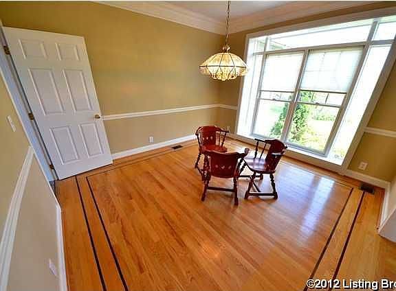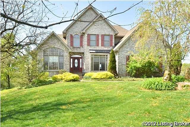 ***NEW PRICE AS OF AUGUST 6, 2012**Golf Course, Water Front and an Amazing amount of Living Space! This all brick 1.5 story home on a spacious 1/2 acre lot offers an amazing 3,250 finished sq. ft stunning with breath taking views of the 16th green and 18th fairway of the Persimmon Ridge Golf Course!!! This home features 4 bedrooms, 3.5 baths, an Office/Study w/palladium windows, and a finished lower level walkout. (A 5th bedroom can easily be added in the basement). Walk through the front door into a large 2-story entry with hardwood flooring, crown molding, side light windows and a cat-walk/walking bridge on the 2nd floor. To the left an Office with double French doors and a palladium window. To the right the Formal Dining Room with hardwood flooring w/inlayed design, crown molding, wainscoting and a large window to the floor. Now into the breath-taking Great Room with 22-foot ceilings and thru double-palladium windows; a panoramic view of the truly magnificent back yard ( see the pictures). The Great Room also features a double-sided gas fireplace looking into the Master Suite as well there is a wall of built-in book shelves and cabinets on each side of the fireplace. The large Eat In Gourmet Kitchen has Granite Counter Tops, Ceramic Tile floors, recessed lighting, a pot hanging rack from the ceiling and a granite top island with a prep sink. The Kitchen is wide open to the Great Room and also has the view of the golf course and lake. There is a large wrap-around deck that overlooks the back yard as well. The Master Suite has a bay window and also faces the back of the home. It features a walk-in closet, trey ceiling, large Master Suite Bath with ceramic tile flooring, garden tub, separate his and her sinks and a separate shower w/double shower heads. The second floor offers 3 large Bedrooms (one of which is being used as an art studio) and one Full Bath. There's a large sitting area outside the bedrooms. The Large Open Lower level partially finished walkout features 8 footceilings and has a large family/gaming room, fireplace, a Full Bath with a steam shower and a walk-in cedar closet next to the Bath. There is a large section of the basement that is unfinished (approx 850 sq ft). Upgrades include Dual Heat and A/C. All home owners in Persimmon Ridge can purchase a Golf Membership at 60% off of the regular fee (or a $6,000 discount). Persimmon Ridge features a clubhouse, pool, playground and tennis and basketball courts. The home is just 8 minutes from Gene Snyder and Old Henry exit. Seller is also offering Buyers a $5,000 decorating allowance.
