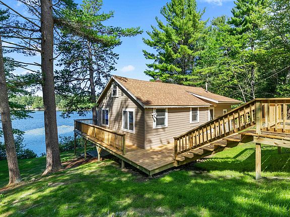 Lake front w/80 ft on Bonny Eagle Pond year round home only feet to the water. New masonry block foundation and new decks/steps just installed. 3 bedroom septic should allow to add a second bedroom in unfinished section of the walk out basement. fantastic views from both upper and lower decks and most rooms, sandy water bottom and shallow entry into water is perfect gatherings and swimming. Some space in finished attic/loft area and good for many uses. Only 20 minutes to Rt one Scarborough, 4 minutes to center of Standish and all major shopping. It is not believed that the 30% expansion rule has been used on this property.