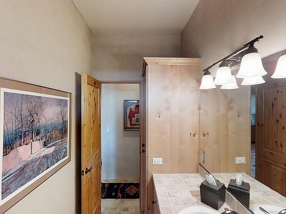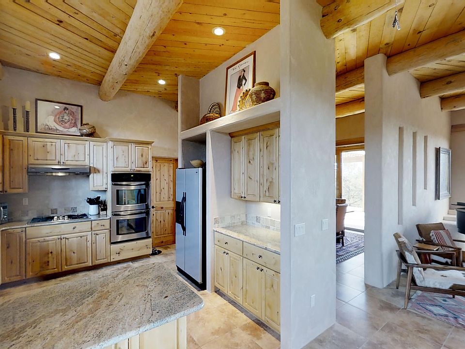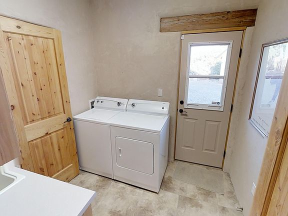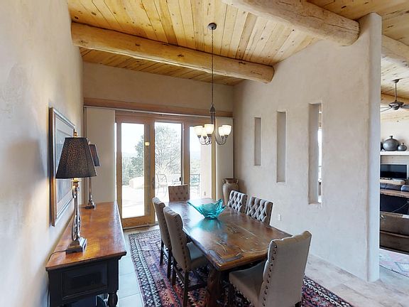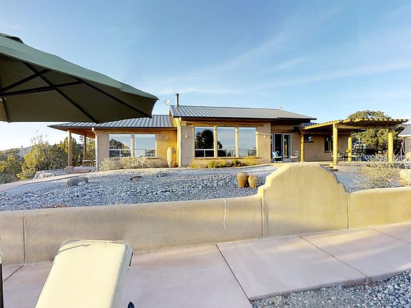 THIS HOME IS TRULY SPECIAL. A Real adobe construction home with 24" walls on the north side and 18" thick walls on the south side. This 3 bedroom two bath custom home features an open/split floor plan with large gourmet kitchen, beautiful concrete window sills, tile floors throughout, radiant floor heat, large wood vigas to go with the many other southwest architectural details. The large mater bedroom boasts a gas fireplace, big master bath, walk-in closet and covered patio. Walk out the back to an amazing patio equipped with kiva fireplace and breathtaking views. There is also a newly constructed one bedroom guest house with bathroom and a two car detached garage. Everything about this property is spectacular including the 11 acre lot that provides amazing views.
