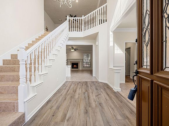 This stunning home, perched high on the lot, elevates the end of a peaceful cul-de-sac in coveted Cochran’s Green. This 2,908 sq ft beauty boasts new floors, fresh paint and refinished cabinets sprawled across one of the largest lots in Cochrans' Green at 15,440 sq ft, with NO rear neighbors. The first floor suite anchors the home while the open kitchen w/granite counters flow seamlessly into the living room, warmed by a gas fireplace. Discover updated lighting, hardware and ceiling fans, plus formal dining and study with soaring with 12ft ceilings behind French doors. Head upstairs for a game room perfect for entertaining with billiards or movies. The private fenced yard showcases a wooden deck with built-in swing and bench. An oversized garage includes workshop space. Gleaming hardwood and tile floors sweep throughout this tranquil retreat. Prime cul-de-sac location offers ultimate privacy and tranquility in The Woodlands, one of America's most desirable communities.