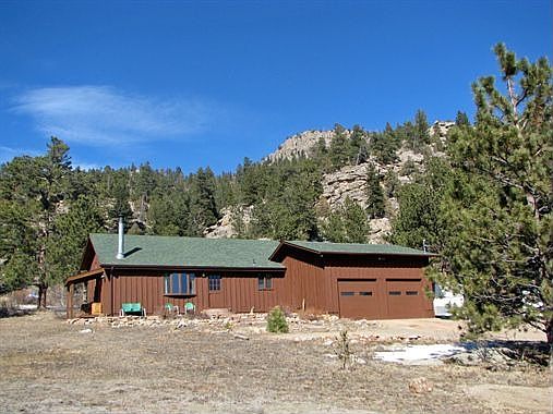 LOCATION, VIEWS, CONVENIENCE in Meadowdale Hills just outside of Estes Park. 4 bed 2 bath home on beautiful 1.35 acre lot w/rock outcroppings and seasonal spring. Price in ownership is evident in this home w/2-car oversized garage plus bonus guest area. Bring your green thumb to tend the garden beds and green house or just relax on the private patio with hot tub and fire pit. Close to open space and National Forest this home can be used full time, as a 2nd home or rental. A good value at $330,000. Note: The 624 sq. ft. Guest Area above the garage is not included in the total sq. ft.