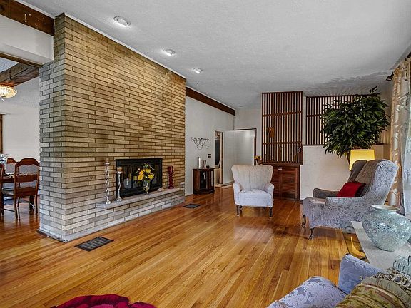 MULTIPLE OFFERS RECEIVED, HIGHEST AND BEST DUE 9/26-5:00 PM -Mid-Century architecture,spacious split style home. Hardwood floor in formal living room with floor to ceiling brick fireplace, opens to eat in kitchen, and spacious dining area. A bright and light sun-room, that feels like a good place to sit, enjoy coffee in the morning and read a book at night. The generously sized master bedroom has a sitting area with deck access, a walk in closet, and a beautifully renovated master bath with jacuzzi.The main level has two more bedrooms and a hall bath. Downstairs you will find, two separate family rooms, one with an additional fireplace, and walkout to patio. A second with built in bar and couch seating. There is a guest room, with access to full bath, and a walk in storage closet that makes for easy switching out of seasonal clothing. A very pretty landscaping design adds to the attractive curb appeal of this centrally located home, with walking access to park