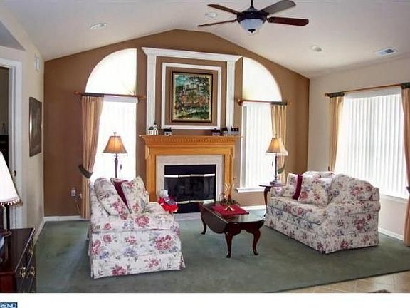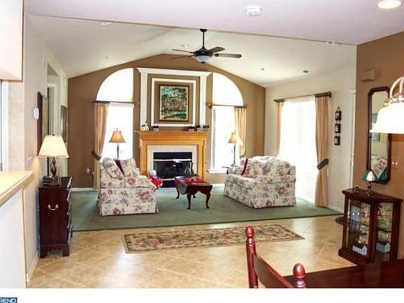 Looking for that WOW factor This one-of-a-kind former model has it all. Spectacular decorator framed fireplace with wood dentil molding surround greets you as you enter this magnificent living room with vaulted ceiling, custom fan/light and recessed lighting. There is practically brand new porcelain tile thoughout the living, dining and kitchen area. The full wall mirrored dining room adds depth and style to the decor. There is custom drapery through out as well as recessed lighting in every room. The kitchen boasts special indirect lighting above the microwave, upper and divider cabinets. The appliances are upgraded and the kitchen floor is heated. The second bedroom features stunning built-in shelving as well as Berber carpeting. The master bedroom has custom framing, lush carpeting and a decorator light/fan. The master bath has gold-color fixtures. This beautiful home is professionally painted throughout. There is extra storage in the garage. One year home warranty included. Call today!