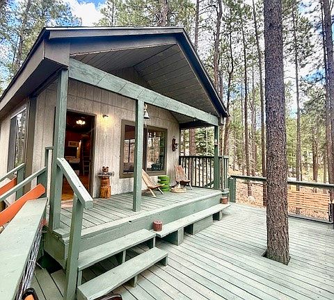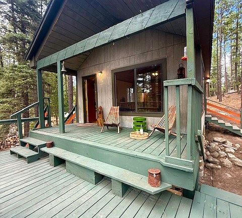 Elevated Mountain Style in Thompson Ridge! This newly refinished 1BR. 3/4 Bath -Cabin is the ultimate four-season escape, designed for effortless living & smart investing. Featuring a custom kitchen island, sleek new finishes, and a striking wood burning stove that anchors the space with warmth & character. Panoramic windows flood the interior with light framing stunning woodland views. A charming loft adds flexible space for guests or gear. Enjoy crisp mornings on the elevated deck, perfect for your best cup of coffee yet. Low maintenance, low cost, tasteful design. This is the refined Jemez Springs retreat you've been searching for—tucked among towering pines, and the best neighbors around. Minutes from hiking, fishing, hot springs, ski trails, this is where New Mexicans go to exhale.